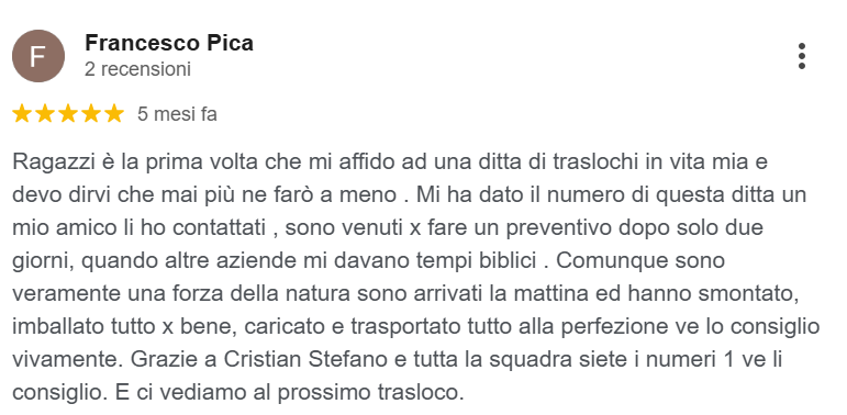 Grazie alla loro competenza, si occupano di ogni dettaglio, assicurando un trasloco efficiente e senza stress per te e la tua famiglia. Potrai rilassarti sapendo che i tuoi beni saranno gestiti con cura e che il trasloco sarà organizzato in modo impeccabile.